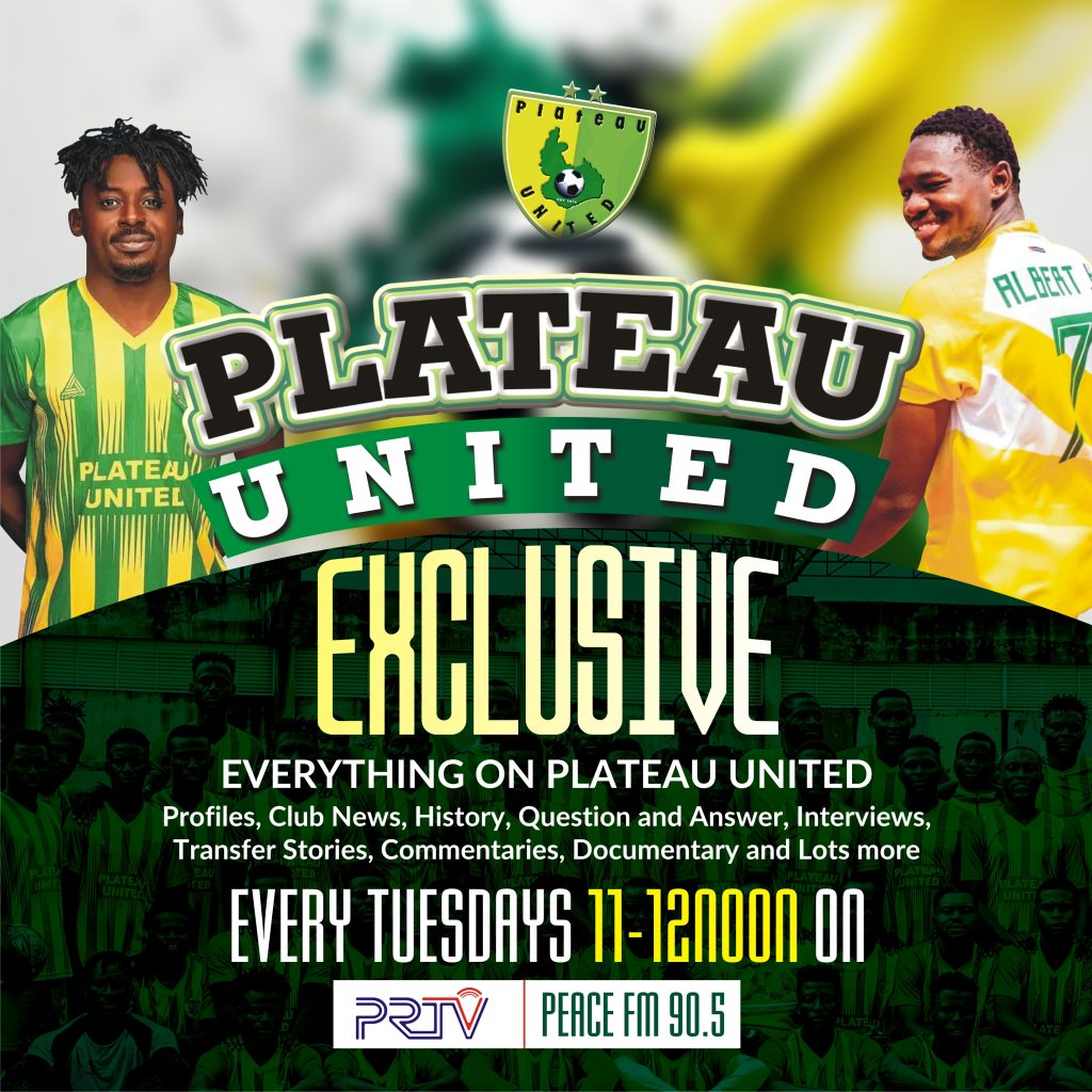 Join us On Radio, Peace Fm 90.5 Every Tuesdays from 11am to 12 noon on `PLATEAU UNITED EXCLUSIVE ‘ , to get latest information on Plateau United FC( Don’t Miss Out)!!!!